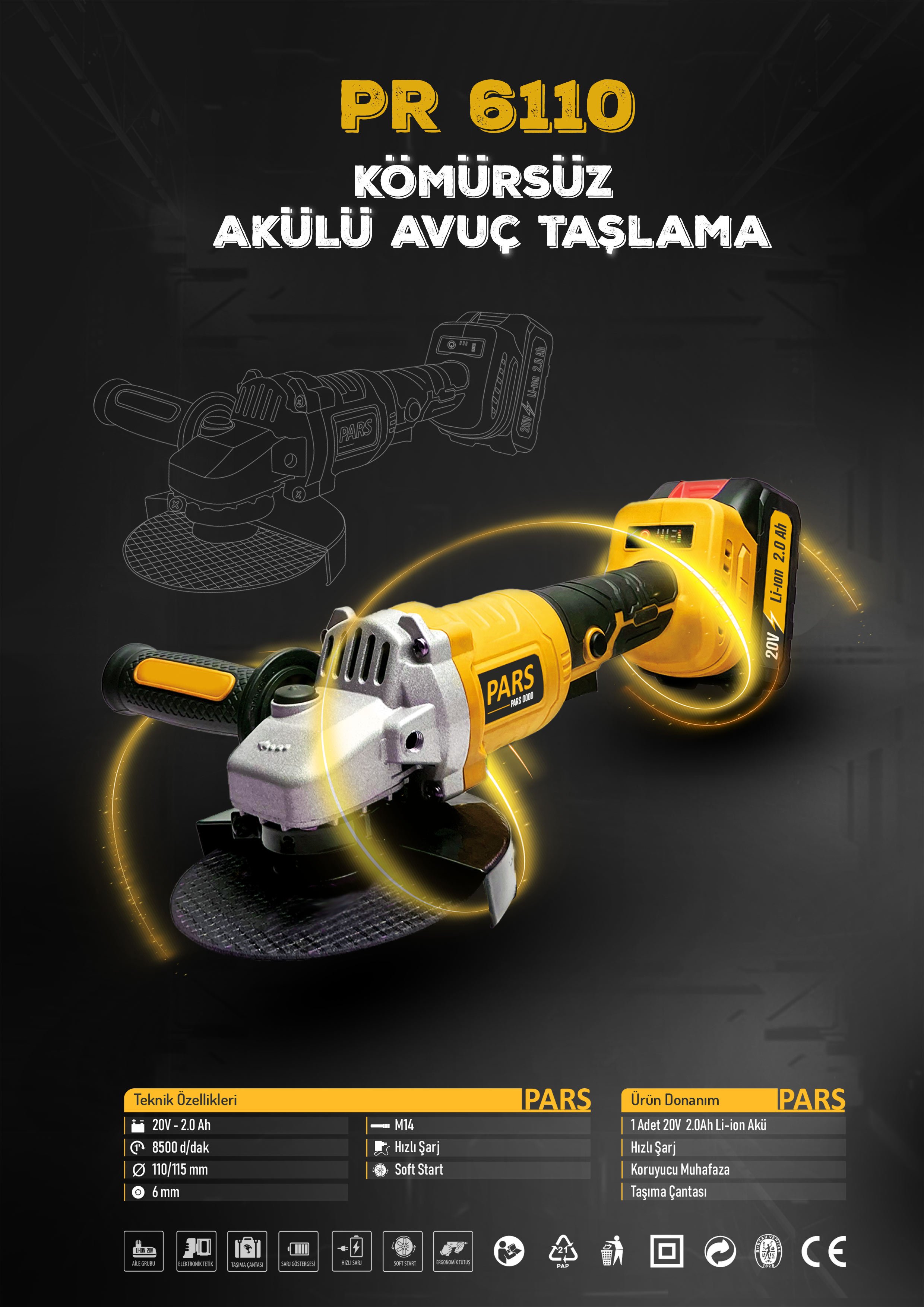 PARS PR 6110 KÖMÜRSÜZ AKÜLÜ AVUÇ TASLAMA