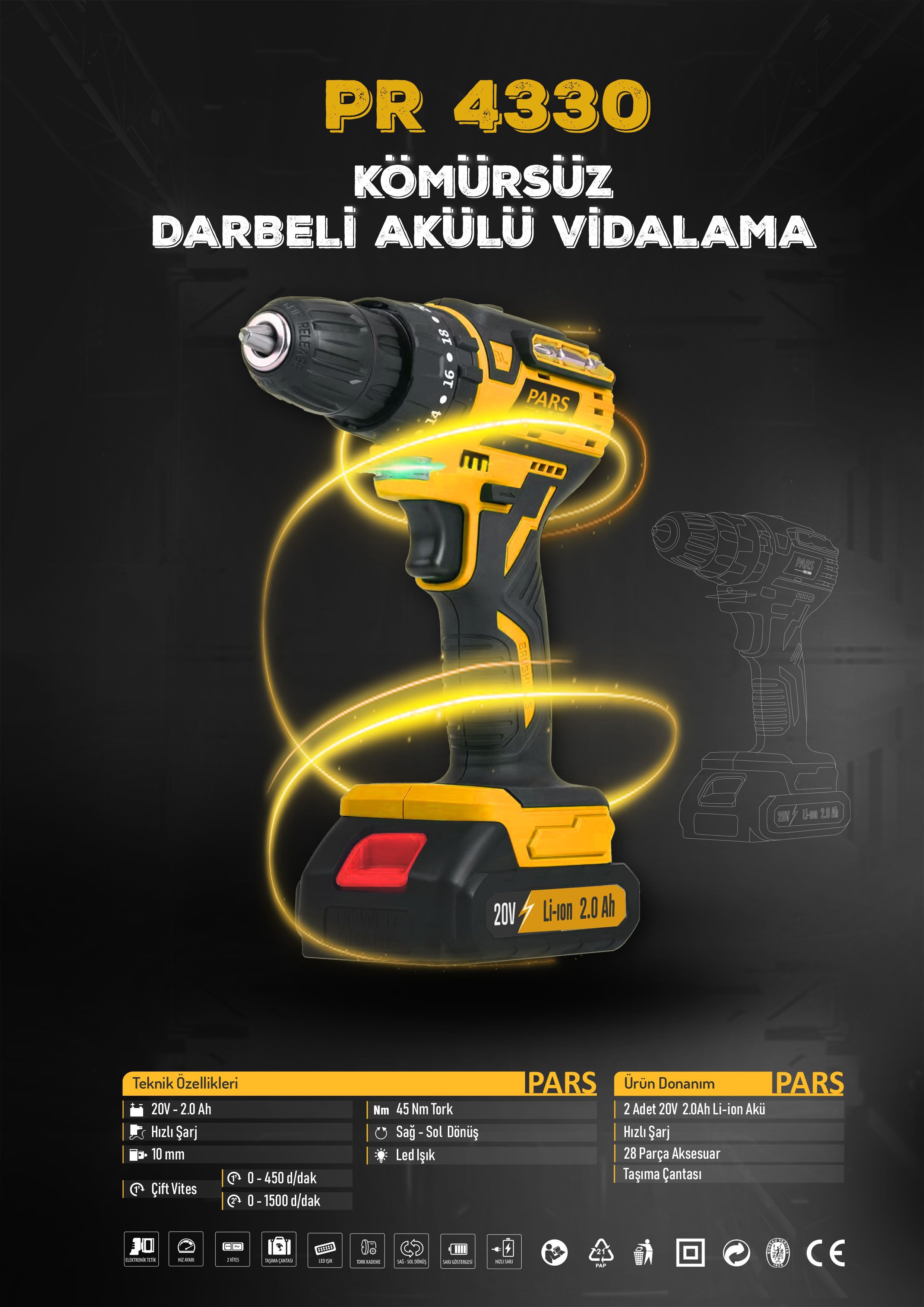 PARS PR 4330 - KÖMÜRSÜZ DARBELİ AKÜLÜ VİDALAMA